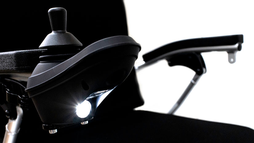 Il modello A ti offre la flessibilità di scegliere la configurazione ideale per le tue esigenze. Ad esempio, il joystick può rimanere sul bracciolo come di consueto, con la possibilità di riprendere il controllo quando necessario. Il nuovo joystick è dotato anche di una luce per illuminare il percorso, tuttavia questa funzione può essere utilizzata solo quando si guida senza il controllo dell'accompagnatore.