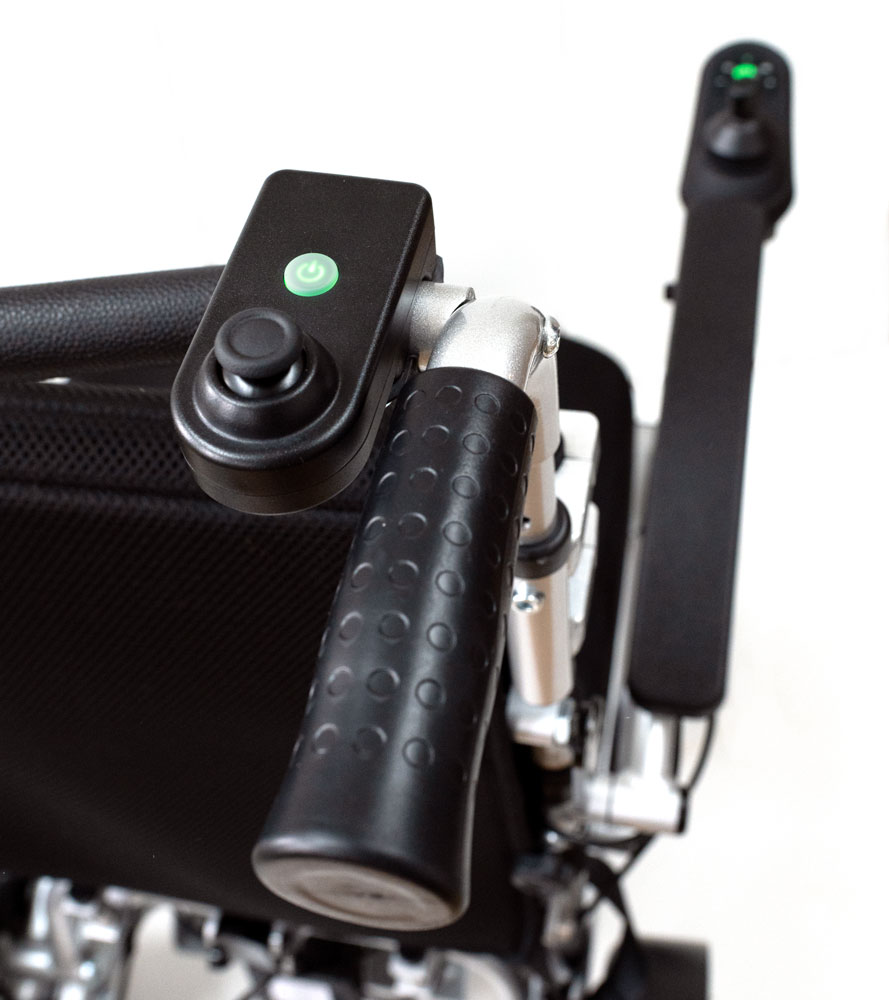 Sei mancino o destrorso? Nessun problema. Con la nostra configurazione di comando per l’accompagnatore, è possibile scegliere se il kit deve essere posizionato sul lato destro o sinistro, in base alle proprie preferenze. Il joystick è alimentato dalle batterie standard della carrozzina elettrica e dalla centralina di controllo, quindi non è necessario caricarlo. Inoltre, non consuma batteria aggiuntiva, assicurando l’autonomia estesa della tua Eloflex. Il peso totale del kit di comando per l’accompagnatore, compreso il joystick, è di 1,5 kg. Eloflex