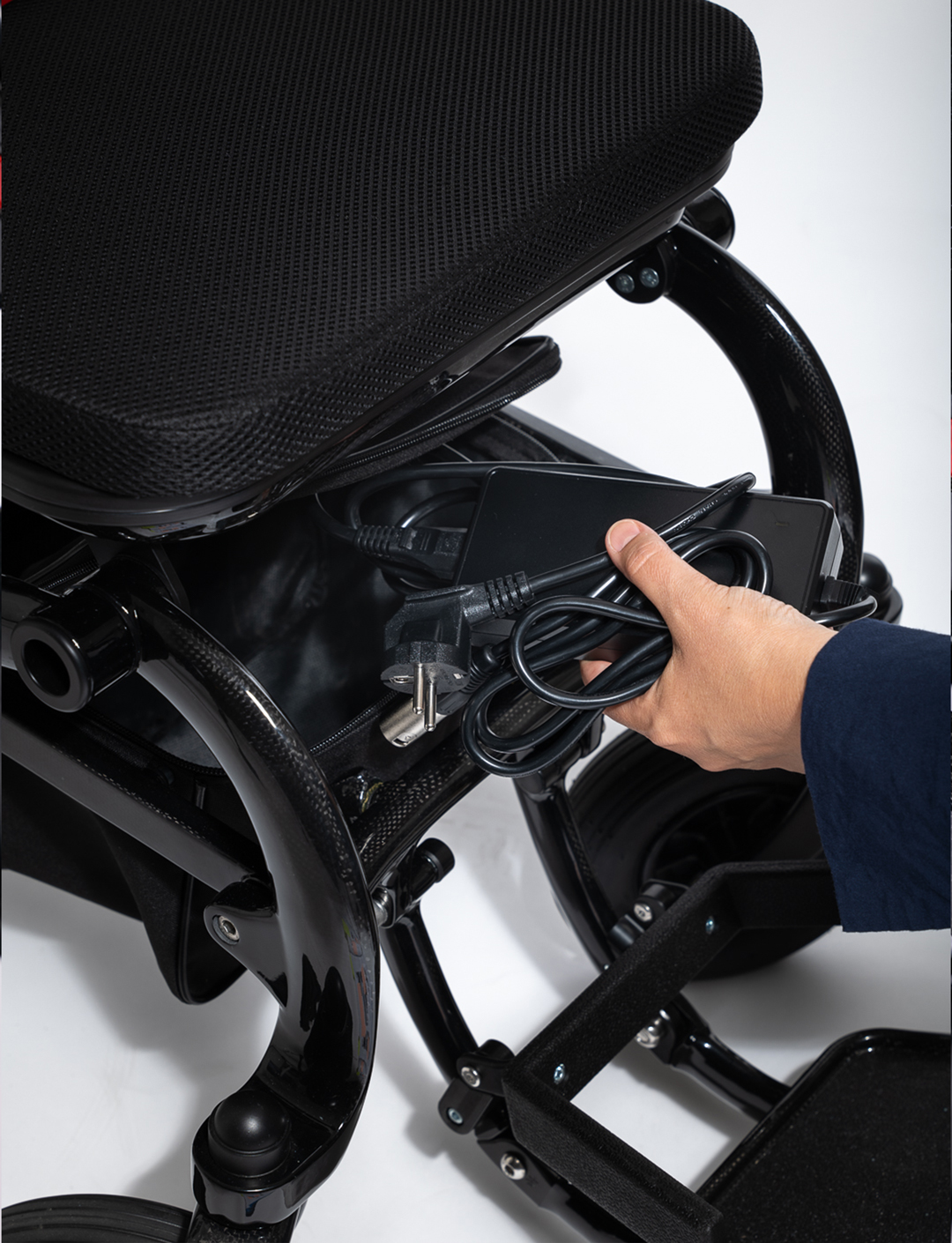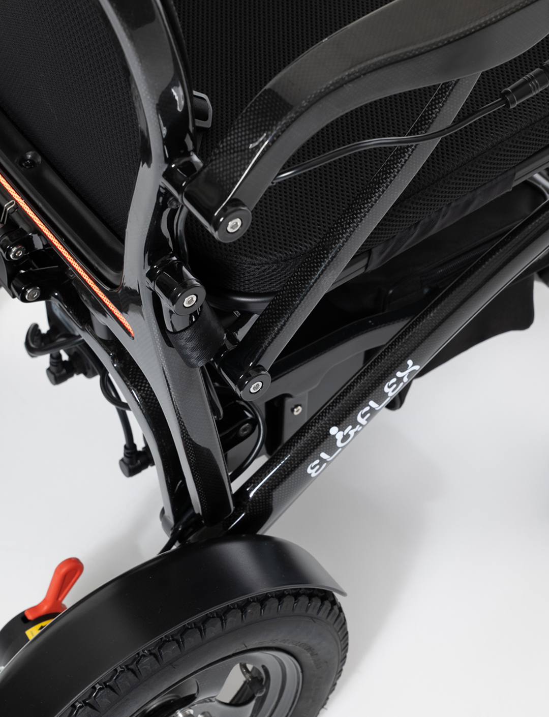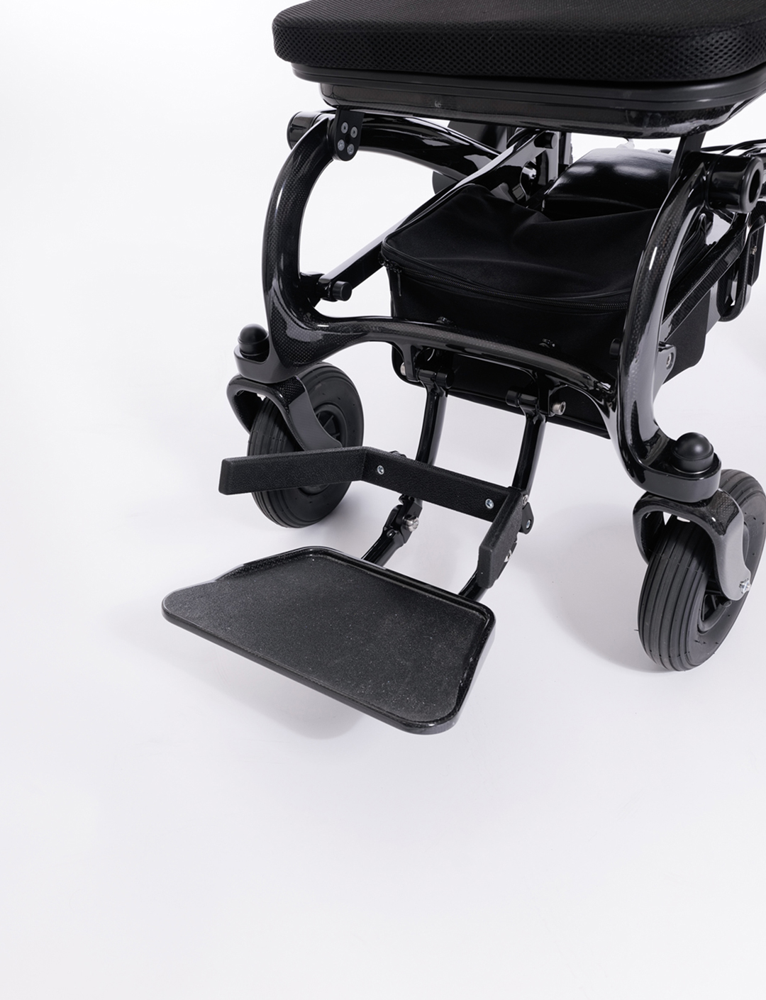 Rinomata per il suo incredibile rapporto resistenza/peso, la fibra di carbonio viene scelta per la costruzione di biciclette, automobili, barche, aeroplani e nell’ingegneria strutturale. Perché non portare questi vantaggi anche alle carrozzine elettroniche? Il nostro telaio in fibra di carbonio non è solo straordinariamente leggero, ma anche in grado di garantire durabilità, assicurando un'esperienza di guida più fluida e piacevole.