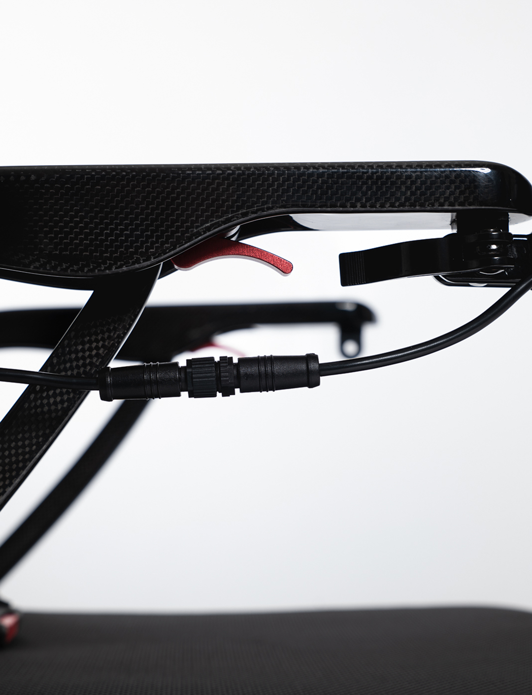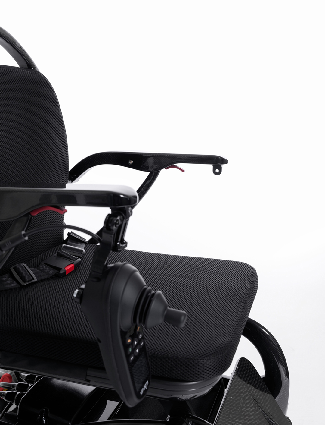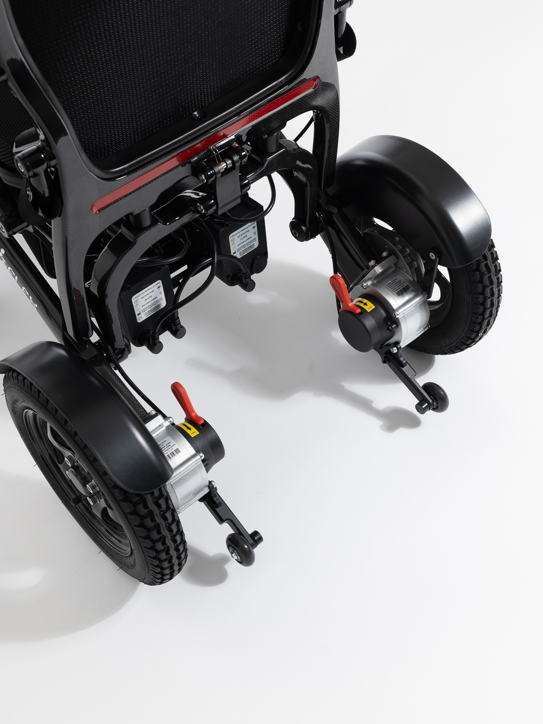 Rinomata per il suo incredibile rapporto resistenza/peso, la fibra di carbonio viene scelta per la costruzione di biciclette, automobili, barche, aeroplani e nell’ingegneria strutturale. Perché non portare questi vantaggi anche alle carrozzine elettroniche? Il nostro telaio in fibra di carbonio non è solo straordinariamente leggero, ma anche in grado di garantire durabilità, assicurando un'esperienza di guida più fluida e piacevole.