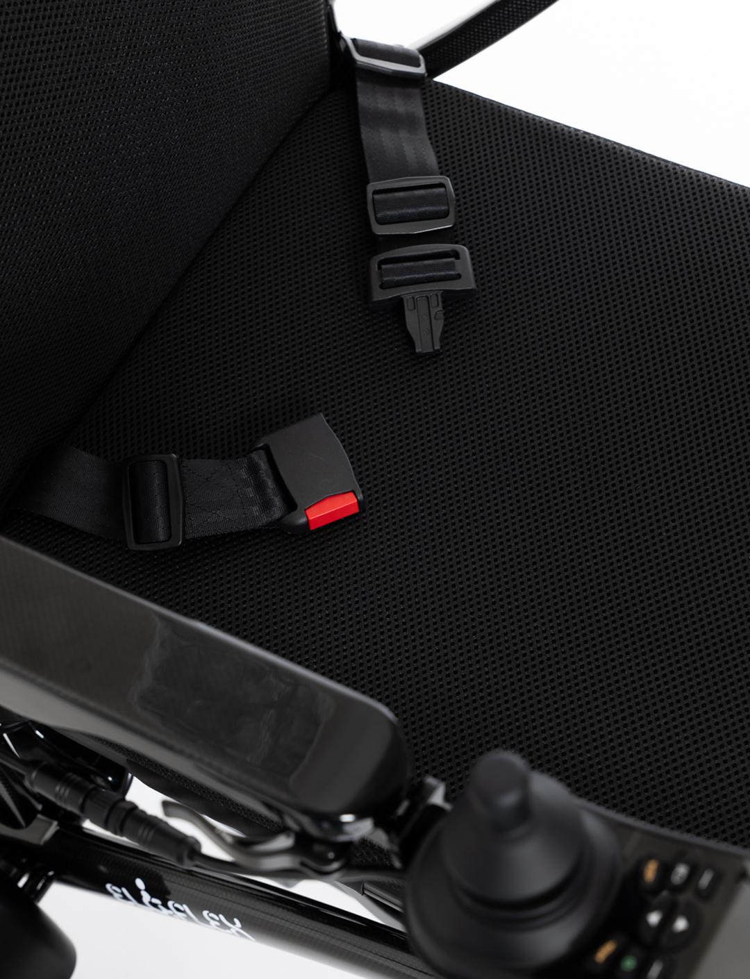 Poiché la sicurezza è una priorità assoluta, tutti i modelli Eloflex sono dotati di dispositivi anti-ribaltamento intelligenti e potenti. Sono dotati inoltre di una cintura di sicurezza regolabile per garantire all'utente una posizione sicura.
