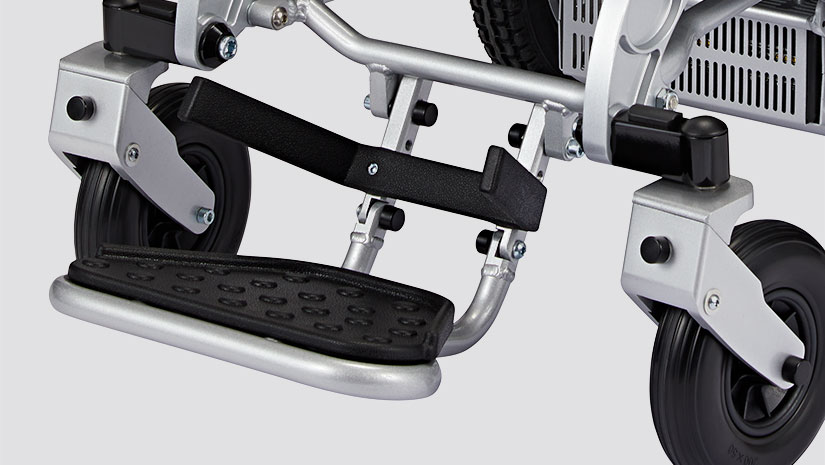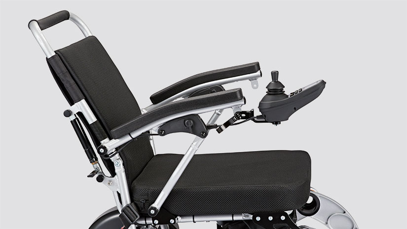 Abbiamo lavorato molto sull’ergonomia e l’usabilità. Il supporto intelligente per il joystick si ripiega verso il basso, per avvicinarsi facilmente al bordo del tavolo. Mentre il poggiapiedi può essere ripiegato per alzarsi e sedersi facilmente. Le grandi ruote posteriori con camera d’aria e l’ammortizzazione a molla nella parte anteriore forniscono un buon assorbimento degli urti, anche sulle superfici più difficili.