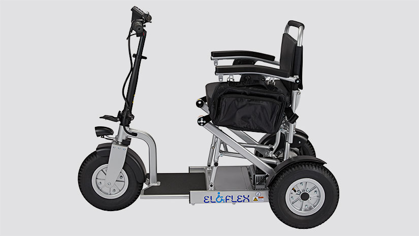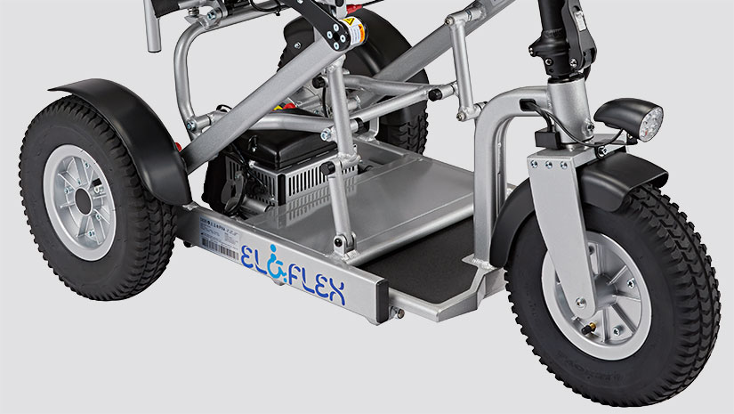 Come le carrozzine elettriche, lo scooter ibrido Eloflex S1 è pieghevole e può essere facilmente ripiegato e portato in viaggio. Premendo un pulsante, è possibile scegliere la lunghezza dello scooter (105-120 cm) per adattarlo all'ambiente di guida. Nella posizione più lunga, la guida è più veloce, stabile e sicura anche sulle superfici più difficili. Nella posizione corta, lo scooter diventa più compatto e facile da utilizzare in ambienti interni come negozi o ristoranti.
