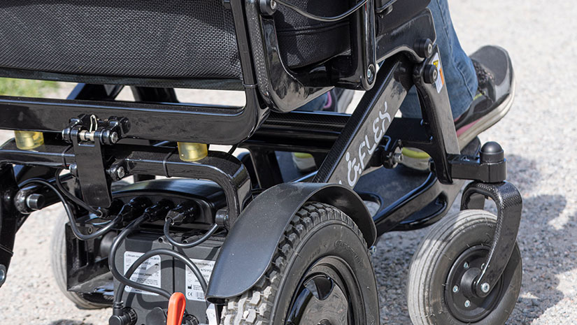 Il trasporto e gli spostamenti dovrebbero essere facili, soprattutto se effettuati con una carrozzina elettronica. Eloflex Z combina l'apprezzato design pieghevole con il telaio in fibra di carbonio, offrendo una maggiore libertà, sia che stiate affrontando un'avventura o semplicemente la vostra vita quotidiana. Con un peso di soli 20 kg, la carrozzina è facile da portare in auto e da trasportare sui mezzi pubblici.